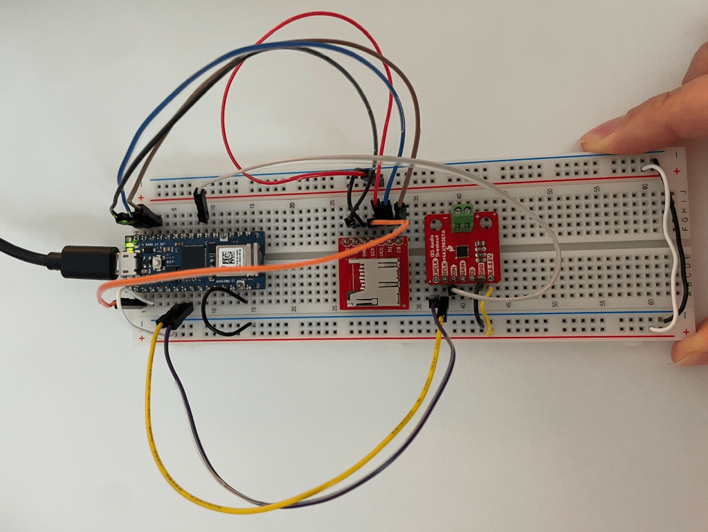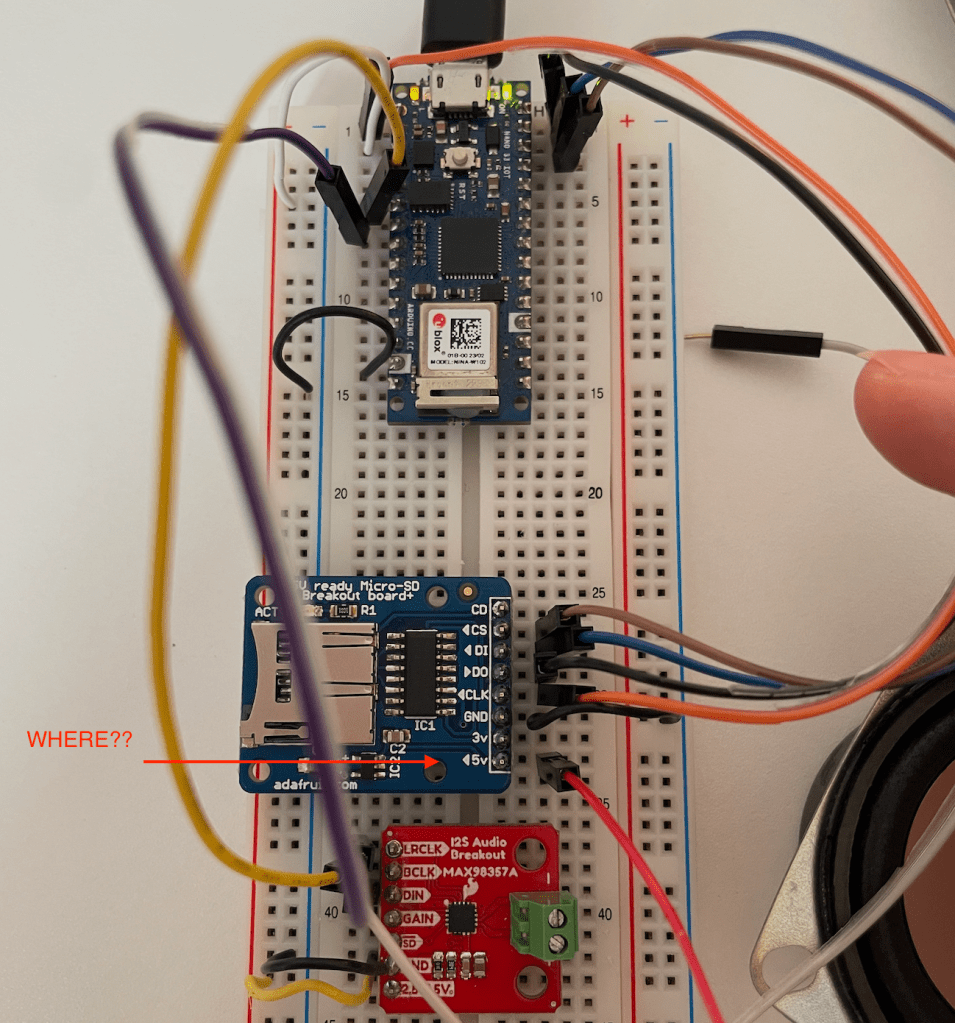 Q: For additional interest, I tried to use 5V SD breakout board, but what should I do with 5V pin? Since Arduino nano33 is 3.3V, I’m not really sure where I should plug in this voltage to run. Should I use DC adaptor instead?