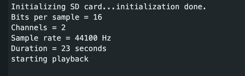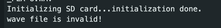 First of all, reset the SD card to FAT format to make it validate to SD reader breakout. I put one .wav file on the SD card to test, but it kept printing out an “invalid” message. Since I was using a 64GB SD card, I think that might be the reason for the error. I’m going to use 32GB instead.