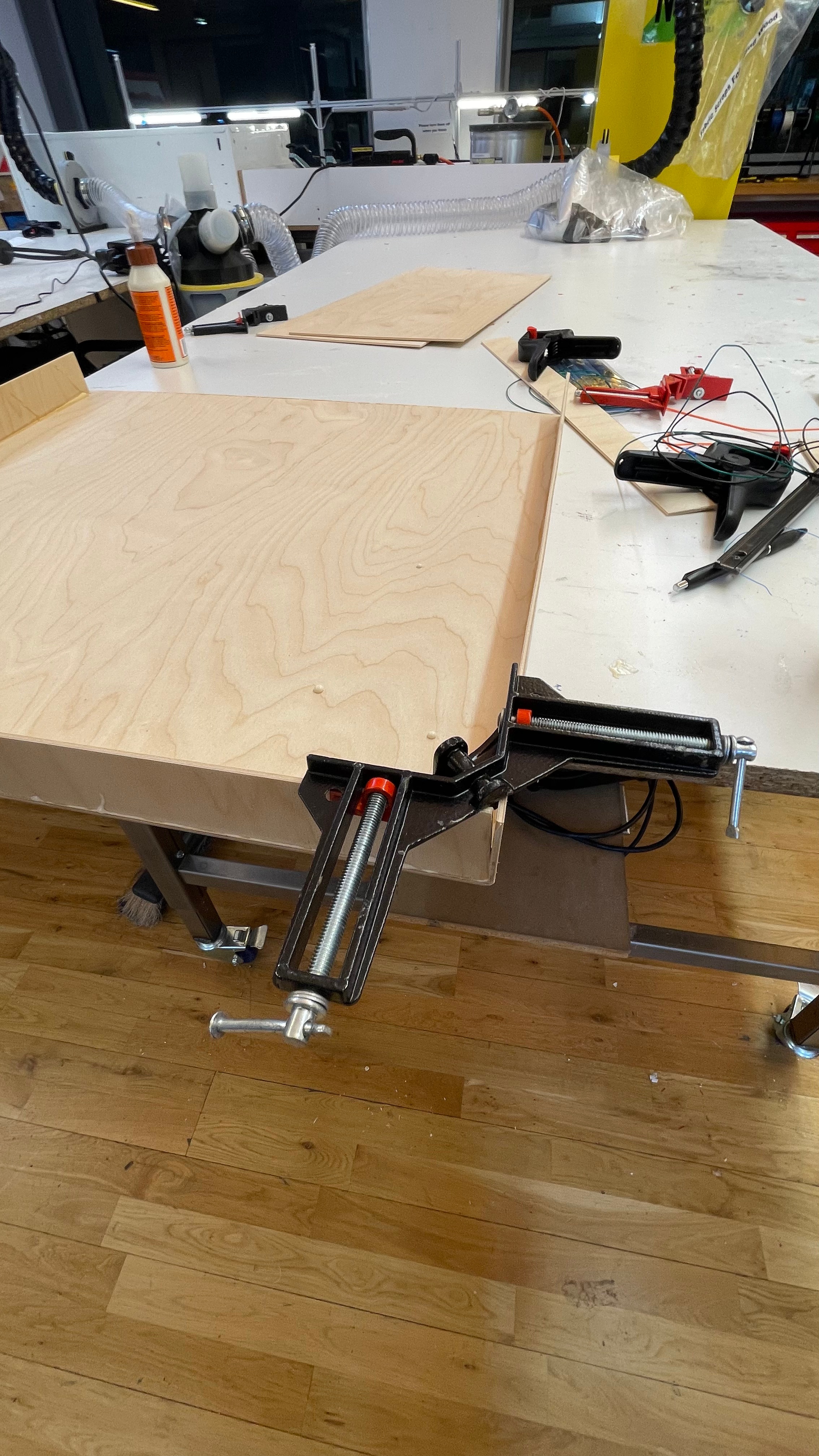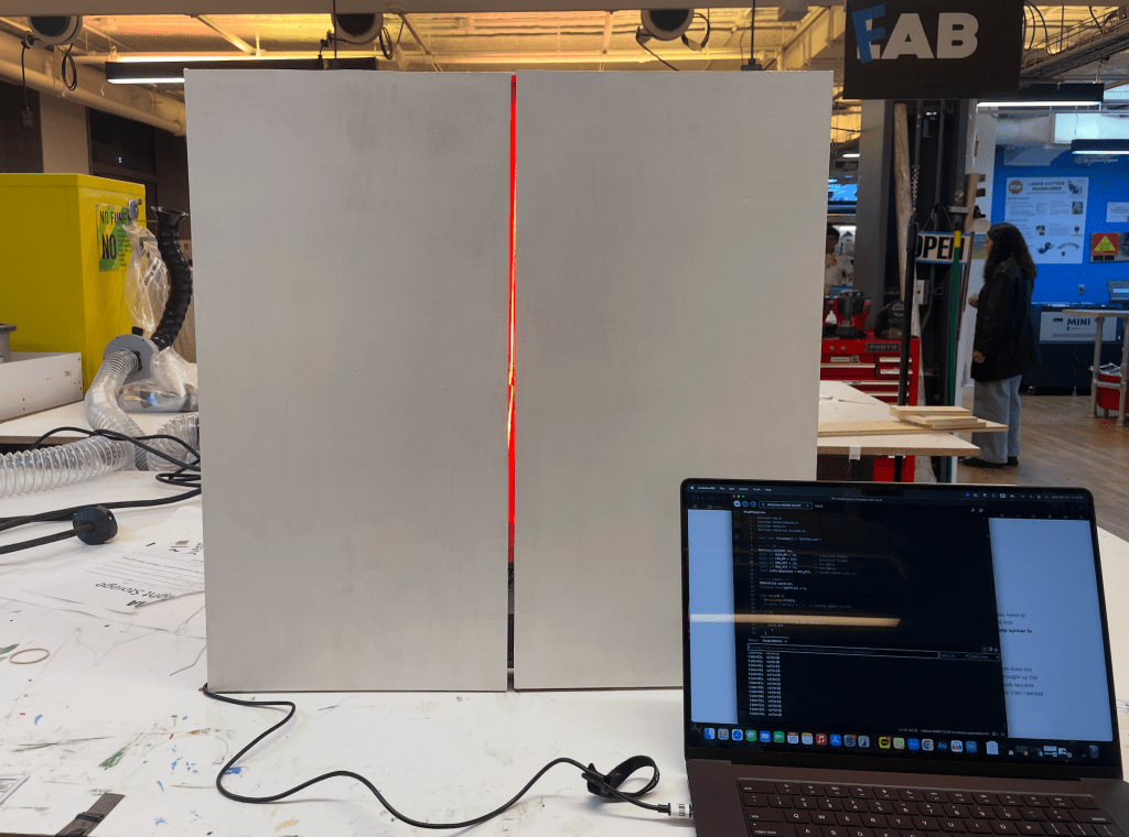 Also, it was quite hard to make the sensor and breadboards stable when I try to push this into the box. Then, I got an advice from the Lab staff to stick my breadboards on to the cardboard so that they don’t mess around when I push them in. Additionally, I used stack of plywood to level the ToF sensor to make sure that it is right behind/between the gap.