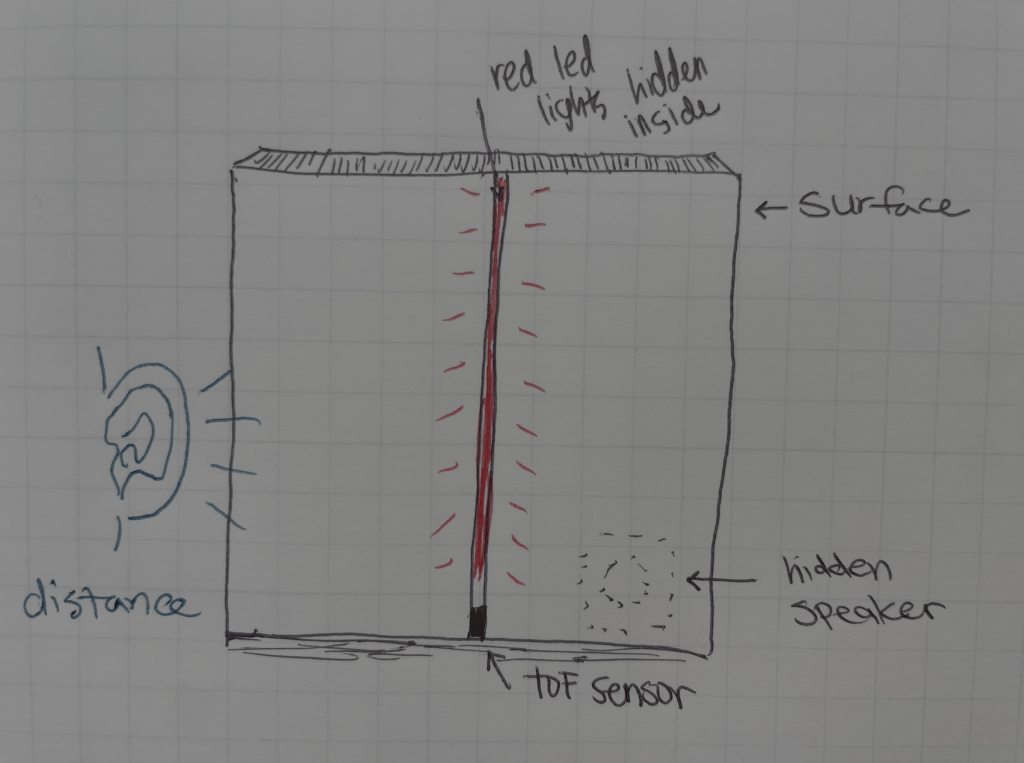 This is a distance detecting sound sculpture. I’m going to put a sculpture with speaker mounted inside. Also, I’m thinking of making a tiny hole or thin slits on the center of this sculpture with led light inside so people get engaged to get closer. At first, the ear seems silent, or emits only the faintest trace of a whisper. As the viewer approaches, the sound gradually becomes clearer (but still whispering), until they must place themselves very close to the ear to hear the secret fully.