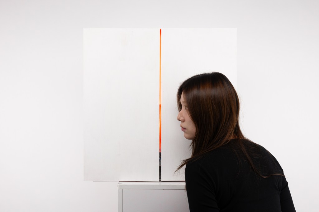 Inspired by The Tell-Tale Heart by Edgar Allan Poe, I created a sound sculpture. It is designed as a white fake wall with a narrow slit in the middle, illuminated by a red LED light strip that subtly invites the audience to come closer.